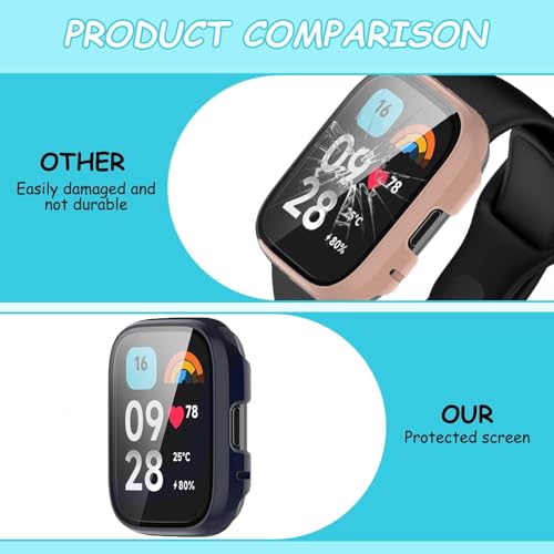 - [مقاس مثالي] متوافق مع ساعة شاومي ريدمي ووتش 3 أكتيف/ شاومي ريدمى ووتش 3 لايت. يرجى التحقق من الجزء الخلفي من جهازك للعثور على موديل الساعة. كما تتيح الفتحات الدقيقة سهولة الوصول إلى جميع الميزات والأزرار