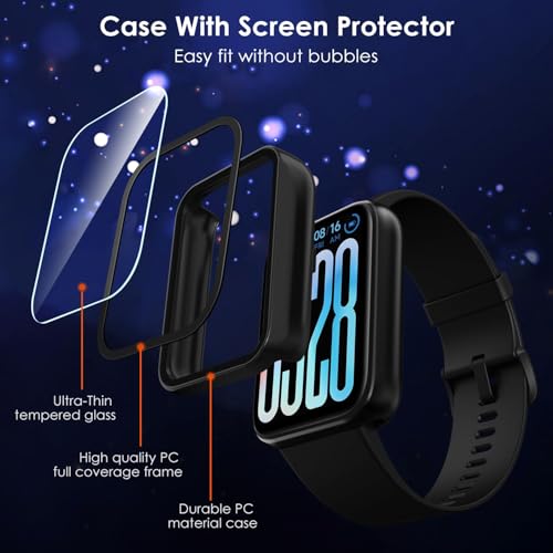 Dl3 Mobilak - Dl3 Mobilak Case with Screen Protector for Xiaomi Smart Band 9 Pro, Bumper Full Coverage Hard PC Overall Protective Cover, Built-in Tempered Glass Film High Sensitivity (Black)
