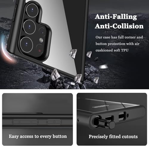Dl3 Mobilak - Dl3 Mobilak Compatible Clear Samsung Galaxy S23 Ultra Case, Shockproof Hard PC + Soft Silicone Transparent Protective Slim Case for Samsung S23 Ultra - Black