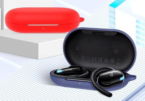 Dl3 Mobilak - Dl3 Mobilak Compatible with Anker SoundCore V20i Case Cover, Soft Silicone Shockproof Protective Case Wireless Earbuds with Carabiner, Front LED Visible (Red)
