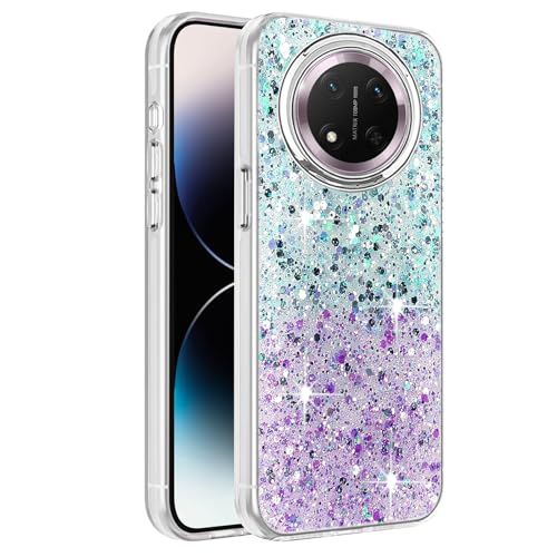 Dl3 Mobilak - دلـع موبايلك جراب متوافق مع هونر X9C، شفاف لامع ولامع، اطار ممتص للصدمات ناعم من البولي يوريثين الحراري، غطاء خلفي صلب للنساء والفتيات، جراب حماية شفاف (اخضر وارجواني)