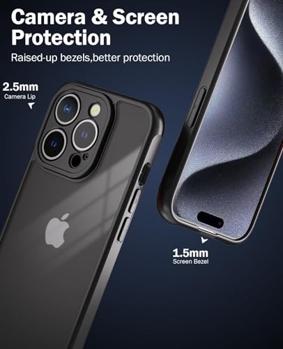 Dl3 Mobilak - جراب حماية متوافق مع موبايل ايفون 15 6.1 بوصة من دلـع موبايلك رفيع الدرجة العسكرية مضاد للصدمات ومضاد للاصفرار غطاء كامل ممتص واقي عدسة الكاميرا لون أسود سيليكون بولي يوريثين حراري بلاستيك كربونات