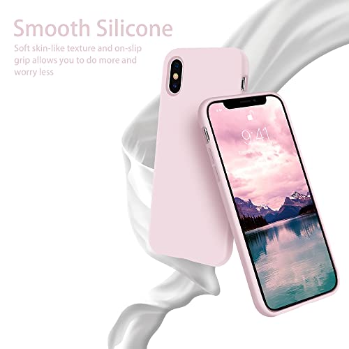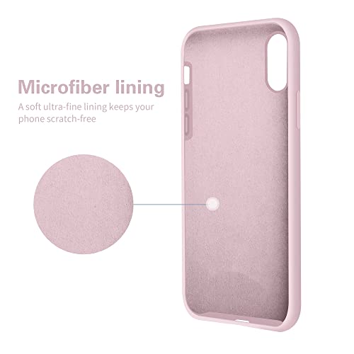 Dl3 Mobilak - جراب متوافق مع موبايل ايفون اكس اس من دلـع موبايلك سيليكون سائل غطاء واقي لكامل الجسم ومضاد للصدمات رفيع ببطانة مايكروفايبر ناعمة مضادة للخدش - ايس بينك زهري