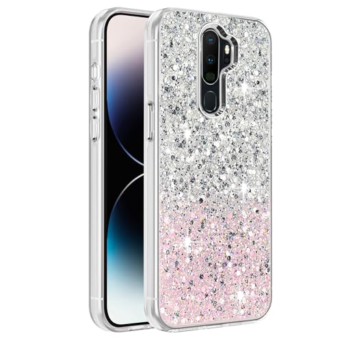 Dl3 Mobilak - Dl3 Mobilak Compatible with OPPO A9 2020 / OPPO A5 2020 Case, Clear Glitter Bling Sparkly, Soft TPU Frame Bumper, Hard-Back Cover for Women & Girls, Transparent Protective Phone Case (White Pink)
