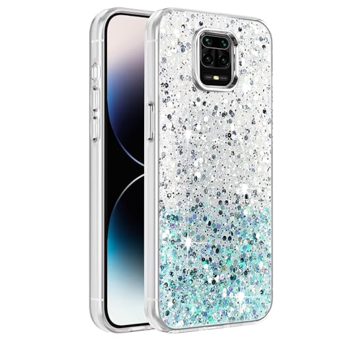 Dl3 Mobilak - Dl3 Mobilak Compatible with Xiaomi Mi Redmi Note 9S / Redmi Note9 Pro/Redmi Note 9 Pro Max Case, Clear Glitter Bling Sparkly, Soft TPU Frame Bumper, Hard-Back Cover for Women & Girls (White Green)