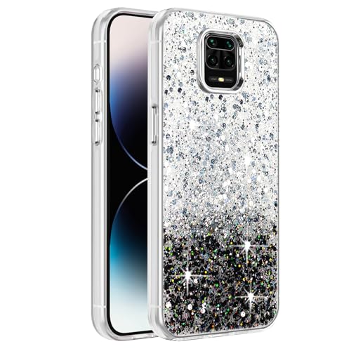 Dl3 Mobilak - Dl3 Mobilak Compatible with Xiaomi Mi Redmi Note 9S / Redmi Note9 Pro/Redmi Note 9 Pro Max Case, Clear Glitter Bling Sparkly, Soft TPU Frame Bumper, Hard-Back Cover for Women & Girls (White Black)