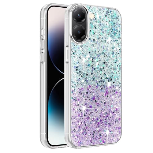 Dl3 Mobilak - Dl3 Mobilak Compatible with Xiaomi Redmi A5 4G / Poco C71 Case, Clear Glitter Bling Sparkly, Soft TPU Frame Bumper, Hard-Back Cover for Women & Girls, Transparent Protective Phone Case (Pink Purple)