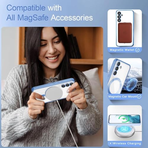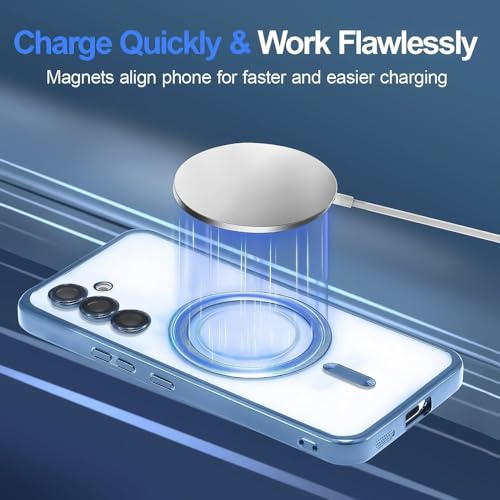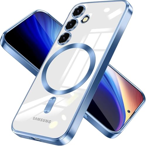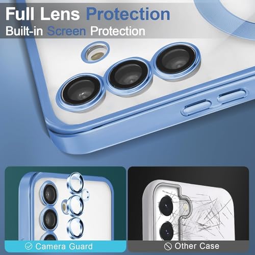 Dl3 Mobilak - Dl3 Mobilak For Samsung Galaxy S24 Fe Magnetic Clear Case, Compatible with MagSafe, Built-in Camera Lens Protector, Luxury Plating Soft TPU Shockproof Slim Thin Cover 6.7 inch (Sierra Blue)