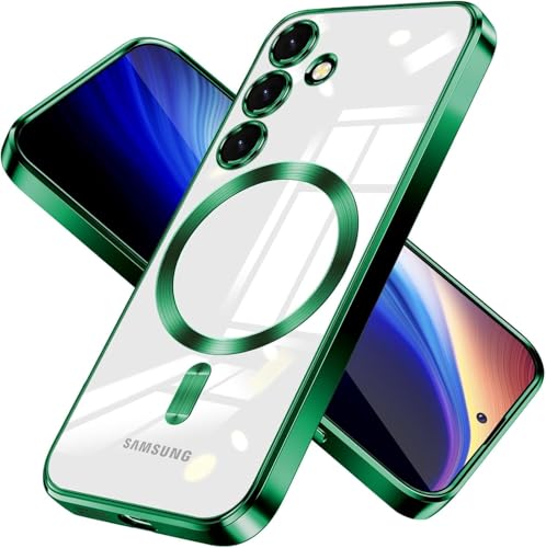 Dl3 Mobilak - جراب مغناطيسي من دلع موبايلك، سامسونج جالاكسي S24 Fe، رفيع وشفاف وناعم من البولي يوريثين المقاوم للحرارة مع واقي مدمج لعدسة الكاميرا، متوافق مع ماج سيف ومقاوم للصدمات، 6.7 بوصة، أخضر