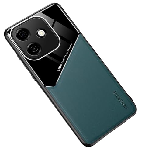 Dl3 Mobilak - جراب حماية بإطار من البولي يوريثين المقاوم للحرارة المرن بتصميم رفيع للغاية مع جزء خلفي جلدي مختلط مزدوج وزجاج بليكسي ومغناطيس سيارة مدمج لموبايل أوبو A3/ أوبو A3X من دلع موبايلك، أخضر