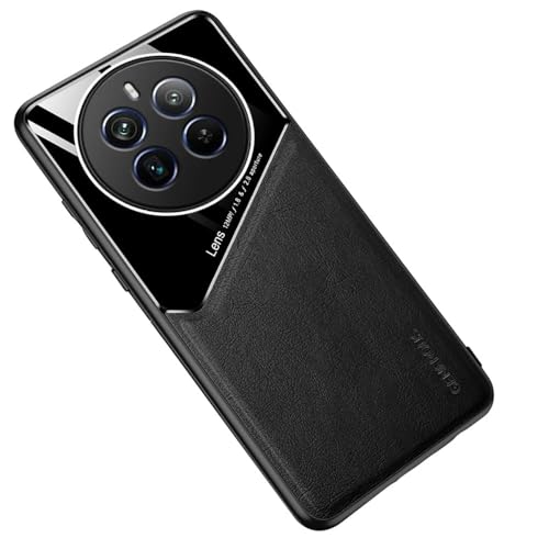 Dl3 Mobilak - Dl3 Mobilak Luxury Case Compatible with Realme 12 4G/Realme 12+ Plus 5G/Realme 13 4G, Ultra-Thin Soft TPU Frame, Back Leather Mixed Double+Plexiglass Cover With Built-in Car Magnetic (Black)
