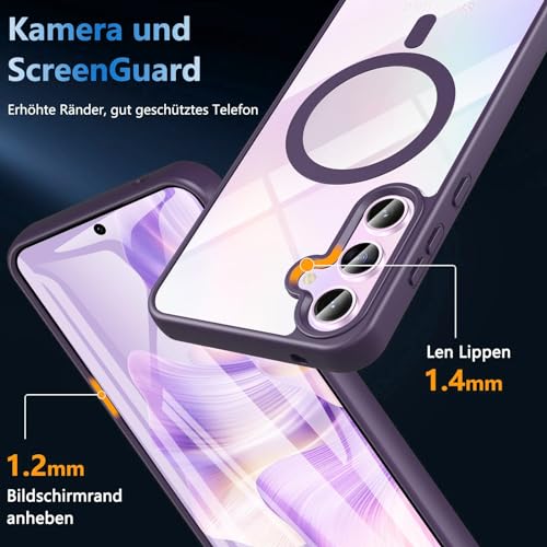 Dl3 Mobilak - Dl3 Mobilak Magnetic Case for Samsung Galaxy S24 5G Case [Compatible with MagSafe] [Shockproof Military Grade], Transparent Back Slim Bumper Cover Phone Case Samsung S24 5G (Deep Purple)