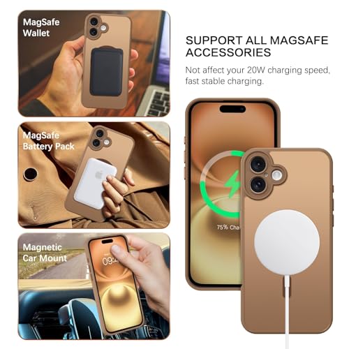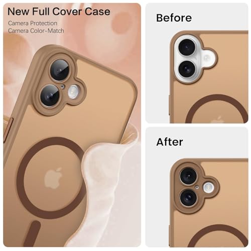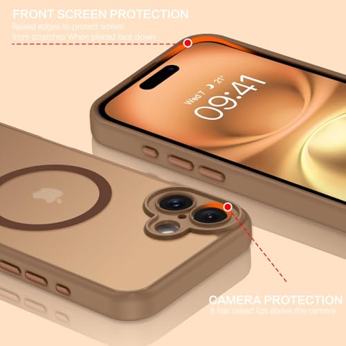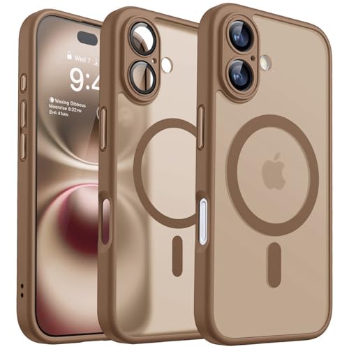 Dl3 Mobilak - Dl3 Mobilak Magnetic for iPhone 16 6.1-Inch Case, Upgraded [Full Camera Protection] [Compatible with Magsafe] [Translucent Matte] Shockproof Protective Phone Cover for iPhone 16 (Brown)