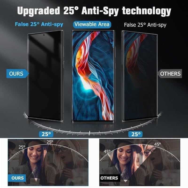 - ✔【Case Friendly & Highly Respond & Shockproof & AR Coating】Ultra thin Samsung Galaxy S25 Ultra privacy screen Protector provide a highly respond experience and smooth screen.After thousands of drop tests, keep it on your phone screen intact, providing maximum protection to your phone.With AR Coating Technology,Anti-Reflection and Enhanced Image Quality,Restore You Original Phone Experience.