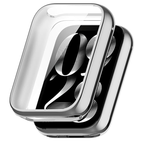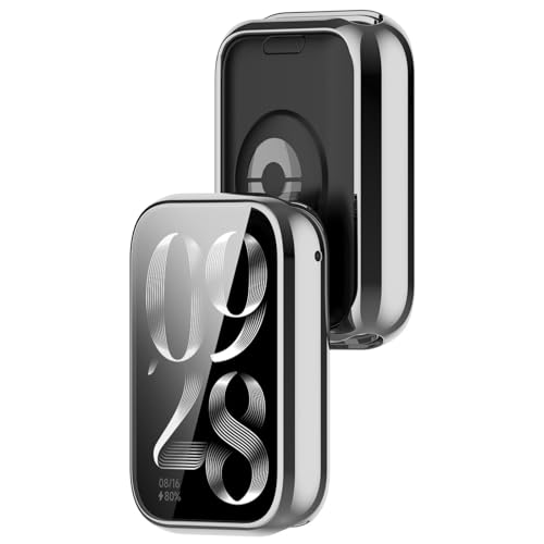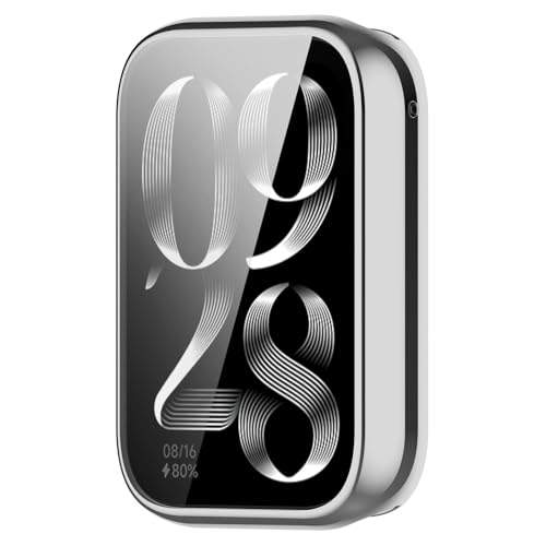 Dl3 Mobilak - جراب حماية مرن شامل مصنوع من البولي يوريثين المقاوم للحرارة مع شاشة حماية مدمجة وإطار ناعم وغطاء مضاد للصدمات متوافق مع شاومي سمارت باند 8 برو ومي باند 8 برو من دلع موبايلك (فضي)