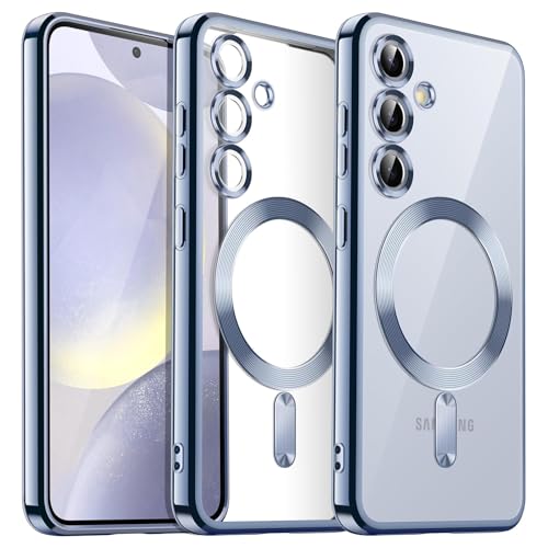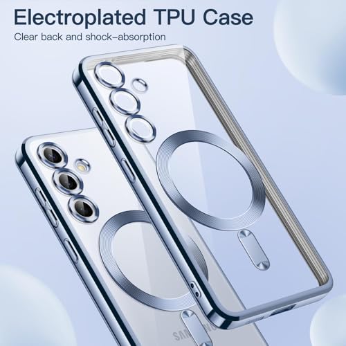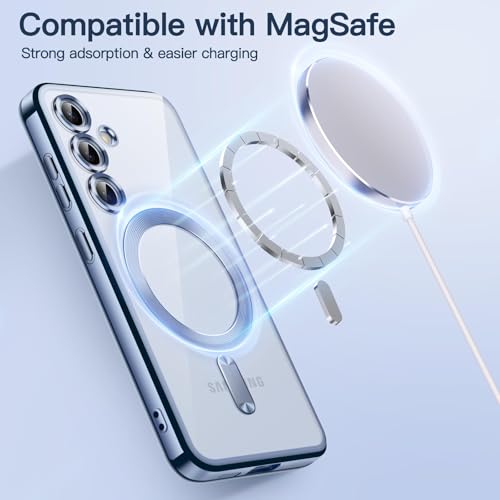 Dl3 Mobilak - Dl3 Mobilak Samsung Galaxy S23 Fe Case [Compatible with MagSafe] Clear Magnetic Plated Slim Thin Shockproof Soft TPU Bumper Protective Phone Case Cover for Galaxy S23 Fe 5g 6.4" 2023 (Sierra Blue)