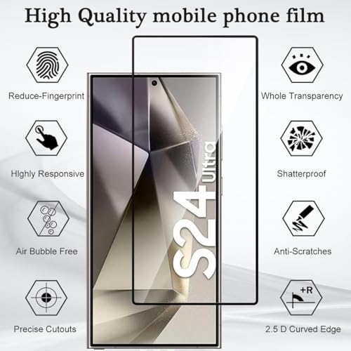 - 【 Exclusively designed for Samsung Galaxy S24 Ultra】 Only compatible with Samsung Galaxy S24 Ultra . Precise cutouts, full coverage protect the whole screen and suitable for most Cases and Covers.