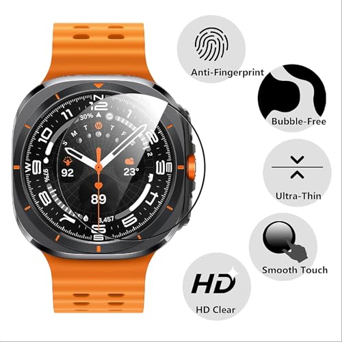 - 【حساسة وعالية الدقة HD】يُحافظ الوضوح الفائق على مستوى سطوع الشاشة الأصلية. وتمنح الدقة الفائقة UHD ونسبة الشفافية التي تبلغ 99.9% أفضل تجربة مشاهدة طبيعية. وتتيح لك خاصية اللمس المثالي ودقة الانزلاق استعمال ساعتك بفعالية.
