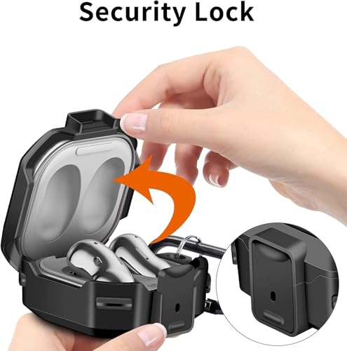 Dl3 Mobilak - Dl3 Mobilak [Secure Lock] Case for Samsung Galaxy Buds FE 2023/Galaxy Buds 2 Pro 2022/Bud Pro 2021/Buds 2 2021/Buds Live 2020, Armor Full Body Rugged Protective Case Cover with Keychain (Black)