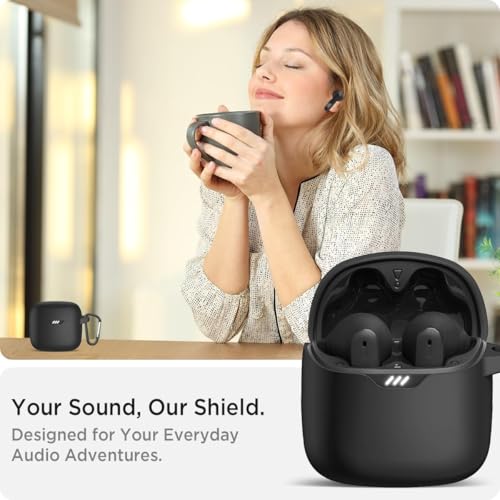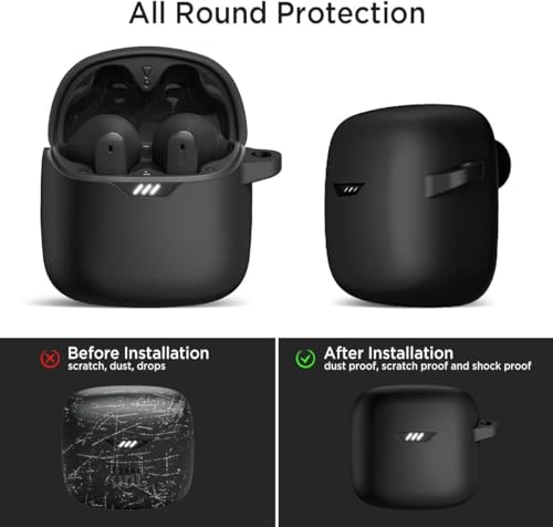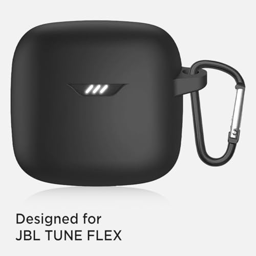 Dl3 Mobilak - Dl3 Mobilak Silicone Case Compatible with JBL Tune Flex Earbuds, Soft Silicone Protective Case Cover, Shockproof Sleeve with Carabiner For JBL Tune Flex (Black)