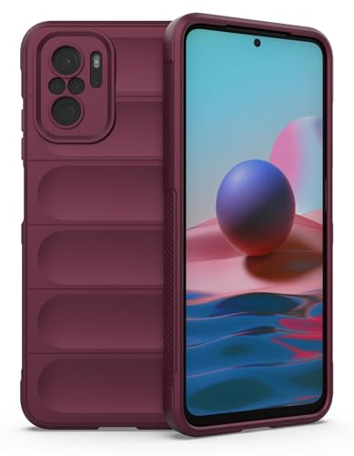 Dl3 Mobilak - جراب حماية سيليكون لموبايل شاومي ريدمي نوت 10 شبكة الجيل الرابع 4G/نوت 10S، جراب شديد التحمل رفيع مرن ناعم مقاوم للصدمات من البولي يوريثين المقاوم للحرارة مع حماية للكاميرا من دلـع موبايلك أحمر نبيذي