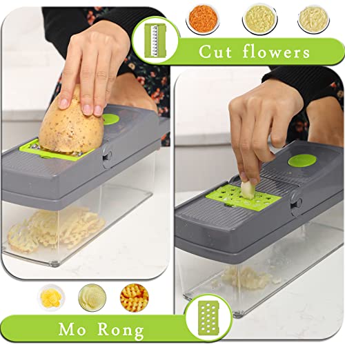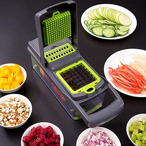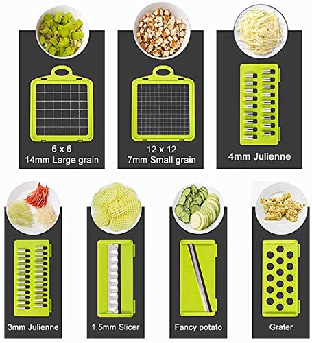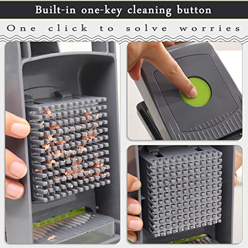 - [Easy to clean] All parts of our vegetable cutter can be easily disassembled and cleaned by hand washing. In addition, all blades can be stored well in the vegetable cutter container after cleaning. Remember! Can not be used in the dishwasher!