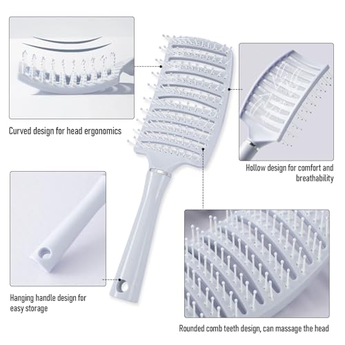 DLLTFPFE - Hair Brush for Women Men, Curved Vented Brush Suitable for WetHair Dry Hair Straight Hair Curly Hair Fine Hair Thick Hair, Make Hair Smooth and Voluminous(Blue), Squarehead