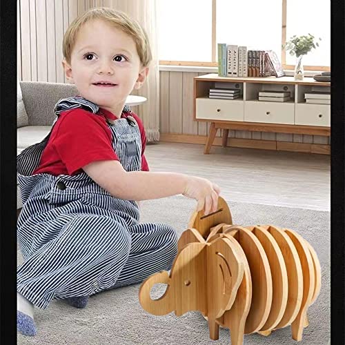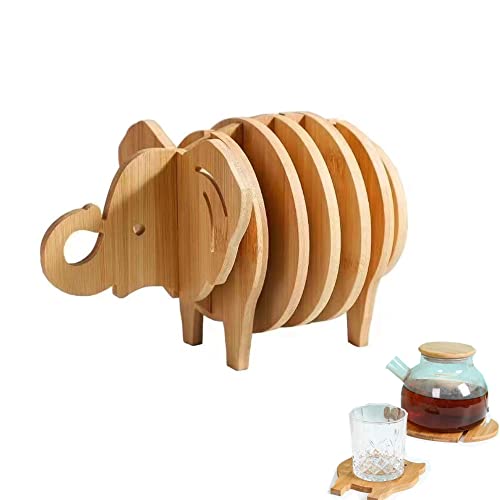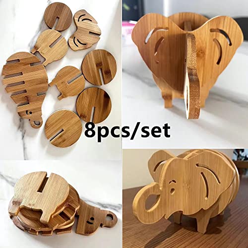 Dlmlemu - 8pcs/Set Bamboo Round Trivet, 3D Elephant Kitchen Mat, Heat Resistant, Brown