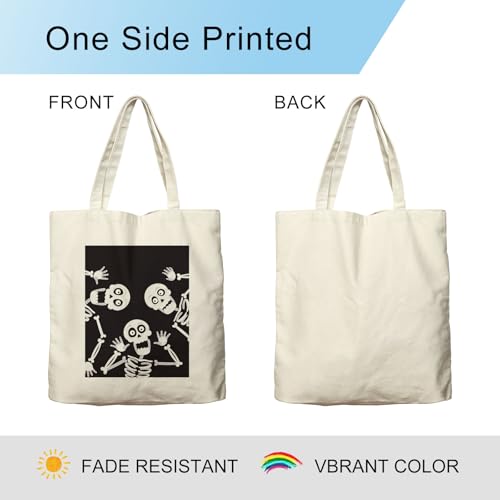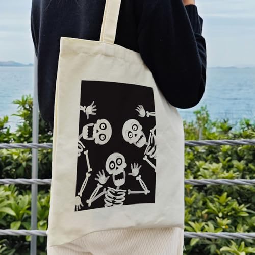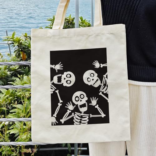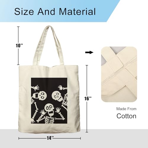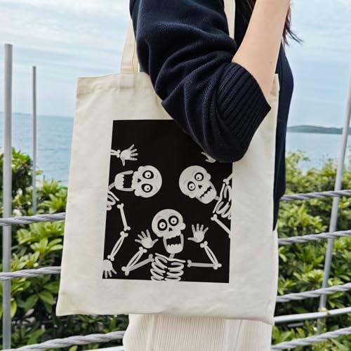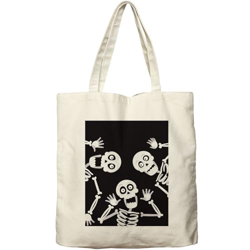Dlzdn - Dlzdn Halloween Skeleton Canvas Tote Bag For Women Aesthetic Shopping Grocery Bag Beach Bag Gifts for Women Teacher Bag Reusable Grocery Bag Thanksgiving Day Gift, Off-white