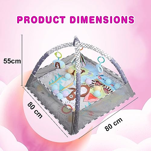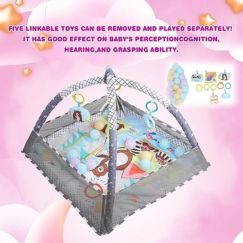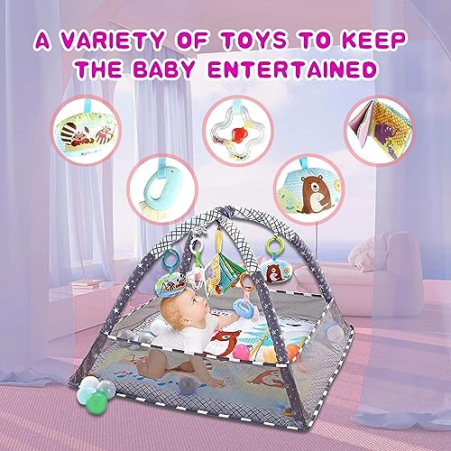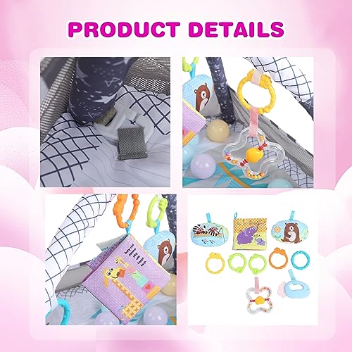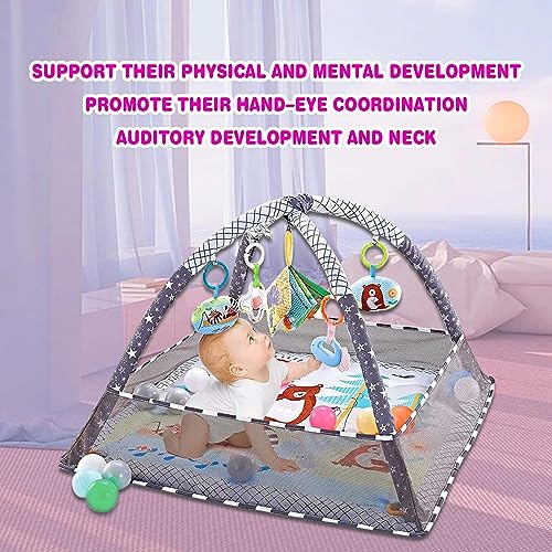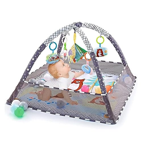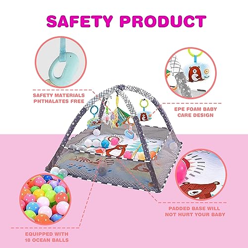 DMG TECH - دي ام جي تيك بساط لعب للاطفال في صالة الالعاب الرياضية، بساط ارضية للاطفال مع 5 العاب معلقة و18 كرة المحيط لتنمية المهارات الحسية والحركية، بساط لعب غير قابل للانزلاق وقابل للغسل للرضع من عمر 0-24 شهر