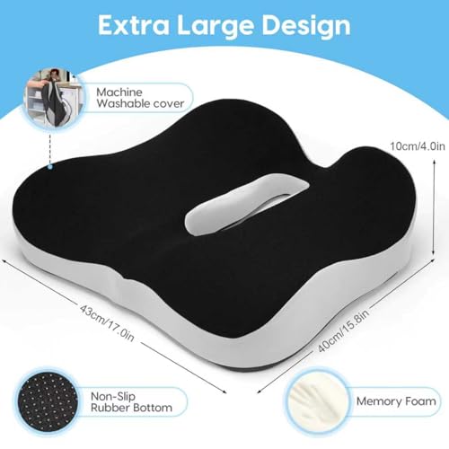 - 【Extra Large Seat Cushion】DmTown office chair cushion is made of oversized (43cm x 40cm) and 10cm thick memory foam layer, which is very suitable for larger people.The pressure cushion has moderate hardness, conforms to the hip curve and provides sufficient support for the hip and thigh. The bottom of the cushion cover is non-slip, removable and machine washable, ensuring easy cleaning and durability.
