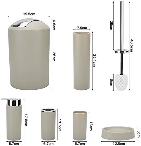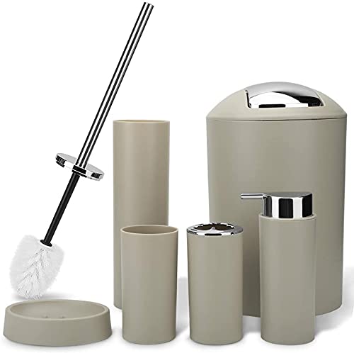 DNTG - مجموعة اكسسوارات حمام تتضمن فرشاة أسنان/موزع صابون/سلة مهملات/كوب/فرشاة/حامل تواليت من دي ان تي جي، 6 قطع، سي