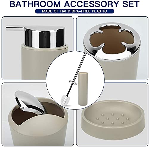 - 【تتضمن مجموعات اكسسوارات الحمام】: 1 كوب، 1 حامل فرشاة أسنان، 1 موزع لوشن، 1 طبق صابون، 1 سلة مهملات، 1 فرشاة مرحاض مع حامل وفرشاة أسنان مجانية.