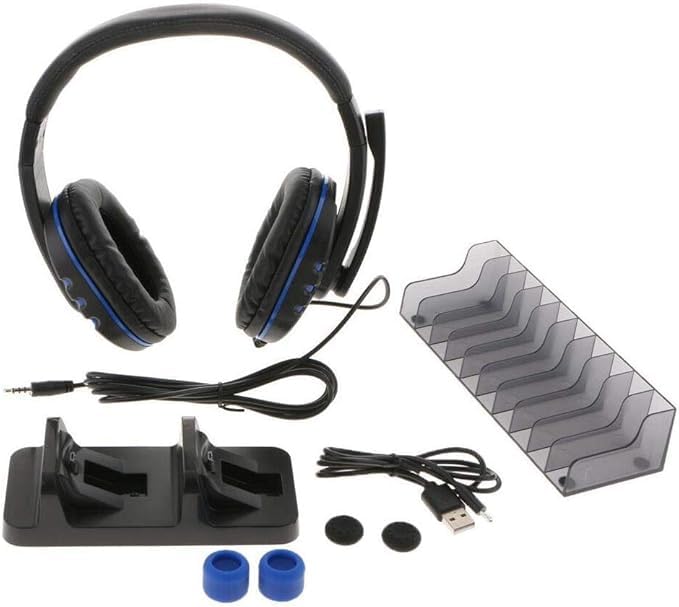 Generic - Dobe 5 in 1 Game Pack, Dual Charger Station Dock, Headset with Mic, Disc Stroage Stand, Charging Cable and Thumbstick Cover Grips for Playstation 4 PS4, PS4 Pro, PS4 Slim