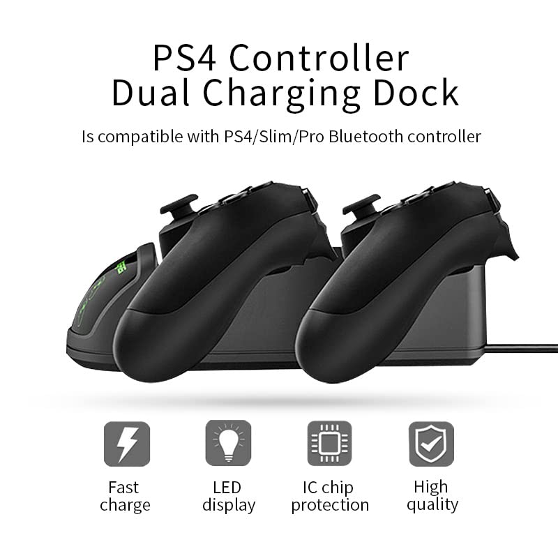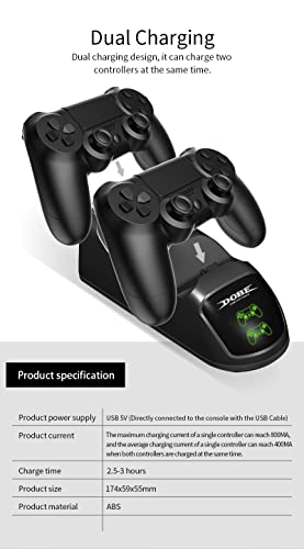 Generic - قاعدة شحن مع مؤشرات اضاءة ليد لبلاي ستيشن 4 من دوب، لأجهزة تشغيل ألعاب الفيديو الرقمية، يو اس بي، لمشغلات الألعاب، رمادي