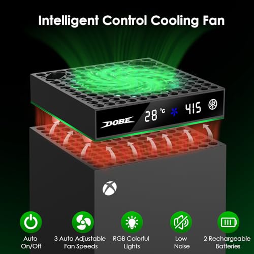 DOBE FOMIS ELECTRONICS - DOBE FOMIS ELECTRONICS Cooling Fan for Xbox Series X and S with Automatic Fan Speed Adjustable by Temperature,LED Display,Low Noise, 2.0 USB Ports and 2 x 1100mAh Rechargeable Battery with RGB LED