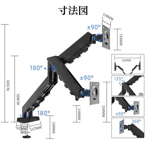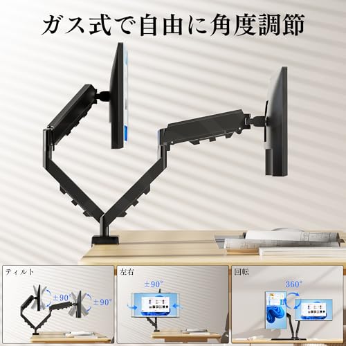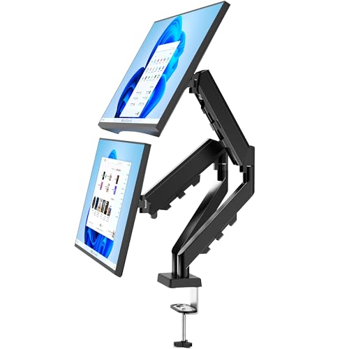 Dobios - ذراع شاشة مزدوج من دوبيوس، ذراع عرض يدعم شاشتين، يدعم شاشات 10 - 32 بوصة، سعة التحميل: (2 - 10 كجم)، مشبك وحلقة تثبيت، فيسا 75*75/100*100، تعديل متعدد الزوايا وإمكانية تخزين الكابلات، لون أسود
