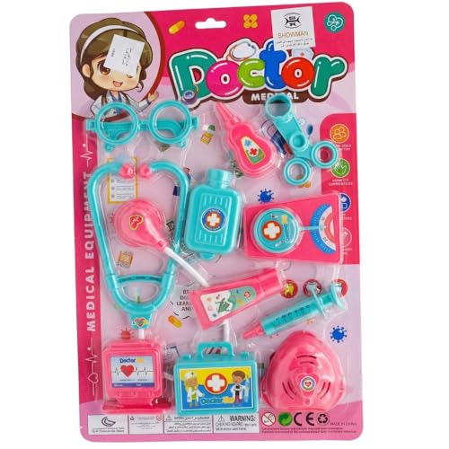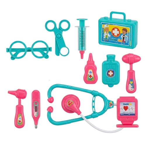 Generic - مجموعة أدوات الطبيب للأطفال، 13 قطعة، ألوان وردي وتركواز، تشمل سماعة طبية ومحقنة ومقص، مناسب من سن 3 سنوات