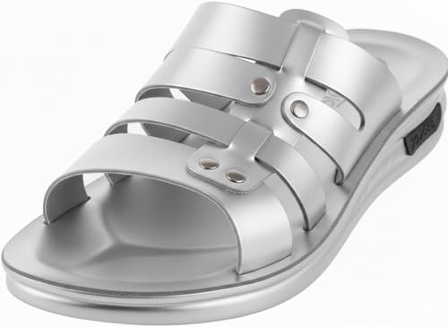 DODGEE - DODGEE Genuine Leather Slip On Slippers with Medical Sole for Men -DOD-D5 DOD-D5-SLV-45-size 45