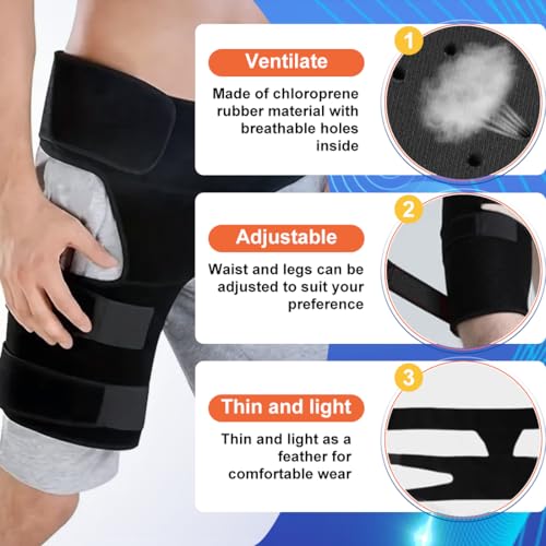 DOKRIN - دعامة ضغط للفخذ والورك من دوكرين، قطعة واحدة من ضمادة الفخذ قابلة للتعديل لدعم الام الفخذ ودعم الفخذ والعصب الوركي