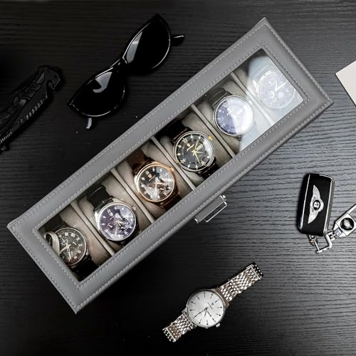 - 1. Made of high quality leather to ensure durability and elegance. 2. 6 compartments for safe protection and storage of watches 3. Stylish and convenient design is easy to carry and store 4. Imported high quality product with precise finishing. 5. Easy to organize and protect your precious set of watches in one place..