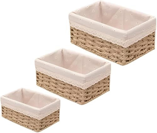 Dollar for Import - Dollar for Improt Storage Baskets - 3 Pack Handmade Woven Rectangle Organizer Bins with Liner for Multiple Use in Living Room, Closet and More, Perfect for Socks, Scarves, Small Items (Beige)