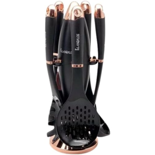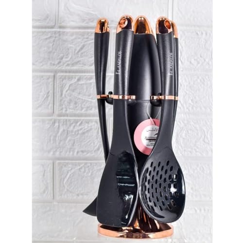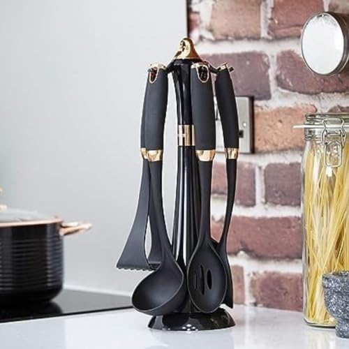 Dollar for Import - طقم أدوات مطبخ من تاور، مجموعة أدوات مطبخ من الستانلس ستيل، لون أسود، 6 قطع