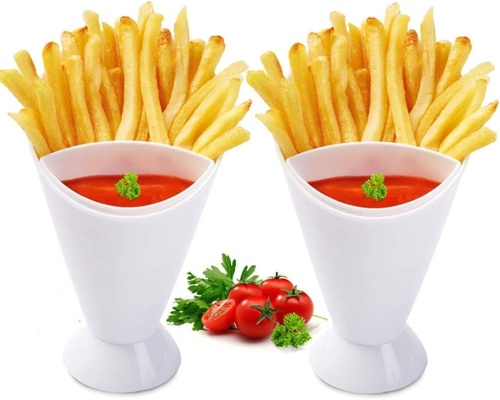 Dollar for Import - حامل بطاطس مقلية مع كوب تغميس، أبيض، قطعتين، تصميم قمعي للوجبات الخفيفة والصلصاتمن من دولار للاستيراد للادوات المنزليه