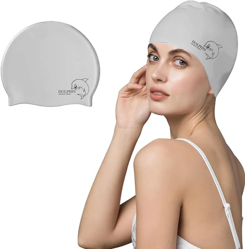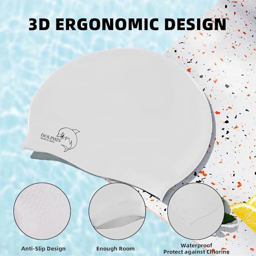 Dolphin - بونيه سباحة سيليكون مقاوم للماء للأطفال والكبار من دولفين، لون واحد