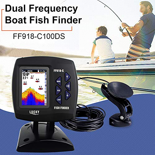 Domary - مكتشف اسماك دوماري FF918-C100DS بشاشة ملونة سلكي مزدوج التردد 100 متر عمق المياه للقارب