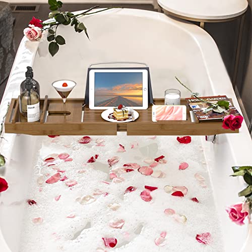 - PRACTICAL DESIGN: The bath tray for tub is designed with several compartments to hold your valuables. It features 3 reading angles for ideal viewing experience of your book or tablet.