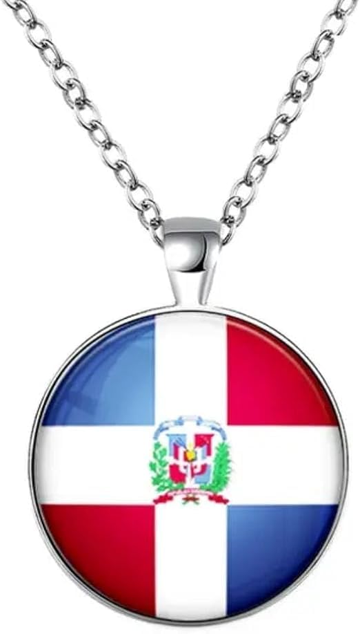 Generic - Dominican Republic Flag Necklace, Tricolor National Flag Design, Silver Metal Pendant, Football Team Fan Souvenir