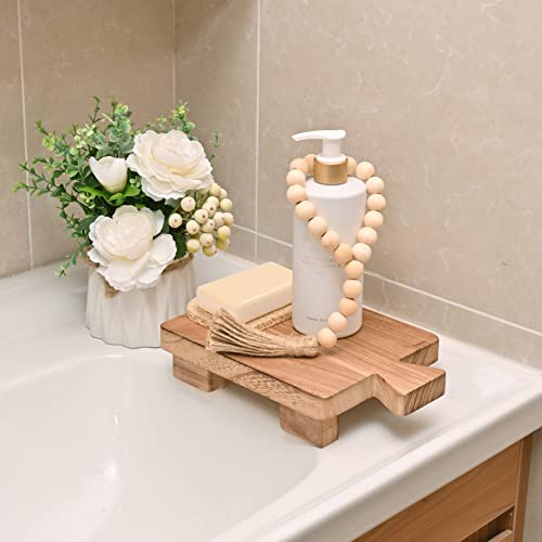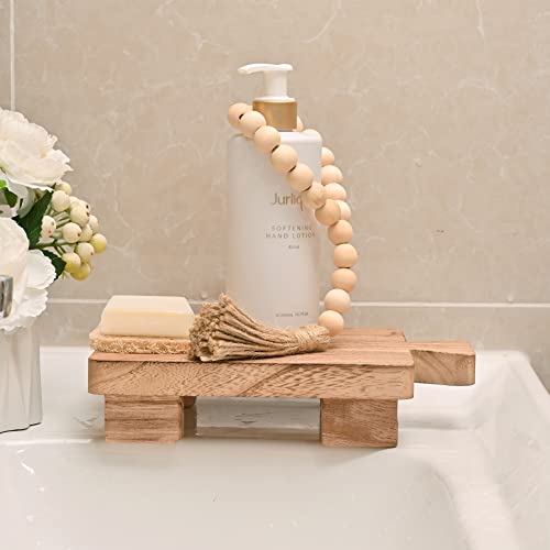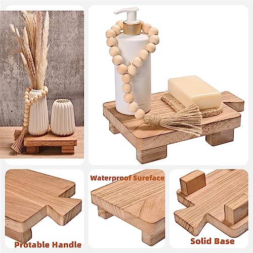 Donmills - Donmills Wooden Soap Tray for Kitchen Bathroom Counter, Wood Pedestal Riser Stand Display Sink Tray Decor Plant Holder for Soap Dispenser Cake Vanity Jewelry Candle Home Decorative Small