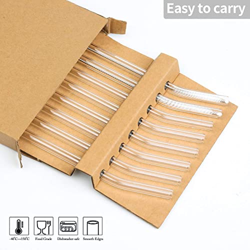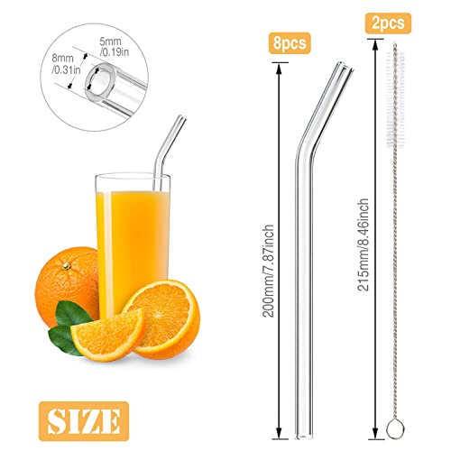 DONQL - DONQL 8 Pcs Glass Straws Reusable Glass Straw Drinking Straws with 20cm Length Eco Friendly with 2 Cleaning Brushes Transparent Clear Straws Perfect for Milk Coffee Coctail (Curved)